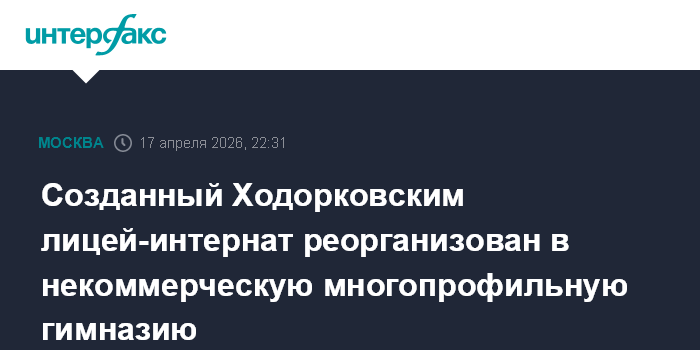 Москва. 17 апреля. INTERFAX.RU - Обращенный в доход государства в 2025 году лицей-интернат "Подмосковный", созданный экс-владельцем "ЮКОСа" Михаилом Ходорковским (признан в РФ иноагентом), реорганизован в некоммерческую многопрофильную гимназию.