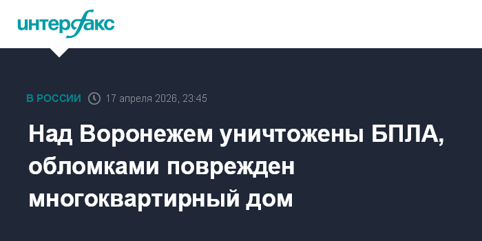 Над Воронежем уничтожены БПЛА, обломками поврежден многоквартирный дом