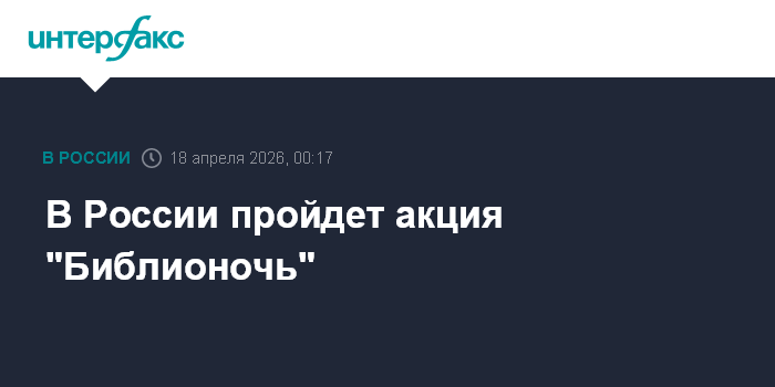 Москва. 18 апреля. INTERFAX.RU - Юбилейная всероссийская акция "Библионочь-2026" состоится в субботу, 18 апреля, в рамках акции предусмотрены творческие встречи, лекции, мастер-классы и концерты.