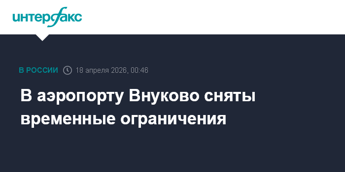 Москва. 18 апреля. INTERFAX.RU - В аэропорту Внуково сняты ограничения на прием и выпуск воздушных судов, сообщила Росавиация в Max.
