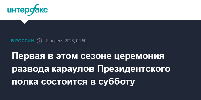 "18 апреля 2026 года в 12:00 на Соборной площади Московского Кремля пройдет первая в этом сезоне церемония развода пеших и конных караулов Президентского полка СКМК ФСО России", - говорится в сообщении отдела по связям с прессой и общественностью Федеральной службы охраны РФ.