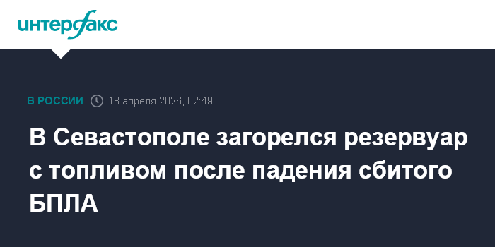 Москва. 18 апреля. INTERFAX.RU - Губернатор Севастополя Михаил Развожаев сообщил, что в микрорайоне Казачья Бухта произошло возгорание резервуара с остатками топлива, предположительно, из-за сбитого беспилотника.