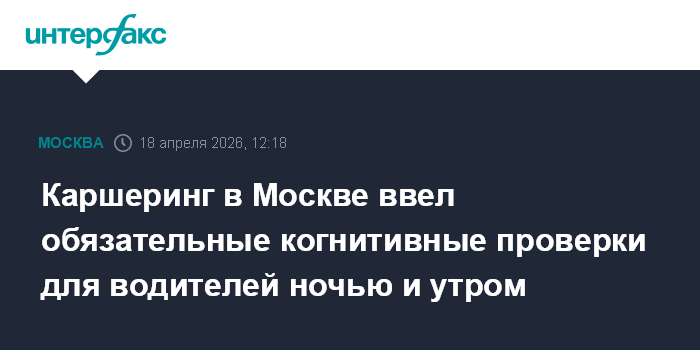 Москва. 18 апреля. INTERFAX.RU - Столичные каршеринговые сервисы теперь проверяют реакцию водителей с помощью когнитивных тестов в ночное и утреннее время, заявил заммэра Москвы по вопросам транспорта и промышленности Максим Ликсутов.