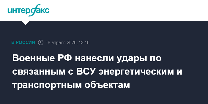 Москва. 18 апреля. INTERFAX.RU - Российские войска нанесли удары по используемым вооруженными силами Украины энергетическим и транспортным объектам, заявило Минобороны РФ в субботу.