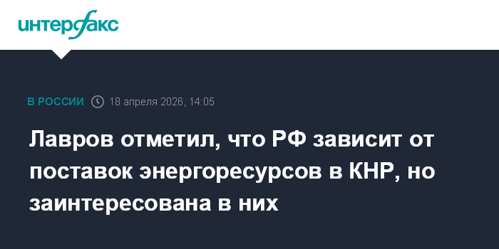 Лавров отметил, что РФ зависит от поставок энергоресурсов в КНР, но заинтересована в них