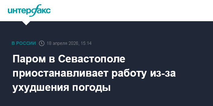 Москва. 18 апреля. INTERFAX.RU - Работа парома приостанавливается в Севастополе из-за непогоды, сообщает дирекция по развитию дорожно-транспортной инфраструктуры города в субботу днем.