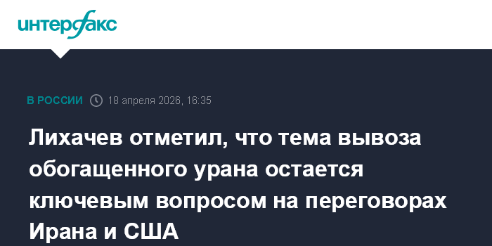 Лихачев отметил, что тема вывоза обогащенного урана остается ключевым вопросом на переговорах Ирана и США