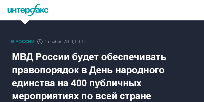 МВД России будет обеспечивать правопорядок в День народного единства на 400 публичных мероприятиях по всей стране