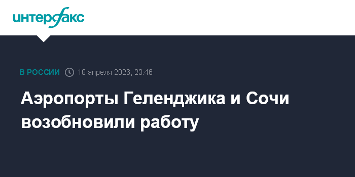 Москва. 18 апреля. INTERFAX.RU - Аэропорты Геленджика и Сочи снова принимают и отправляют воздушные суда, сообщает Росавиация.