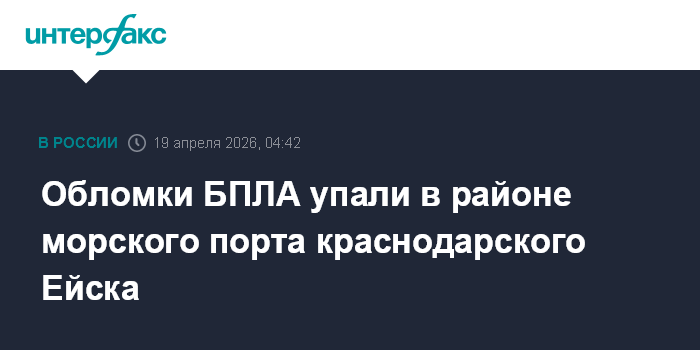 Москва. 19 апреля. INTERFAX.RU - Оперштаб Краснодарского края сообщил в ночь на воскресенье о падении фрагментов БПЛА в районе морского порта Ейска, кроме того, в городе повреждены три частных дома в результате атаки БПЛА.