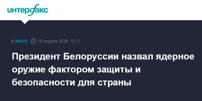 Москва. 19 апреля. INTERFAX.RU - Президент Белоруссии Александр Лукашенко заявил о роли тактического ядерного оружия для республики, пояснив, что не собирался им никого пугать.