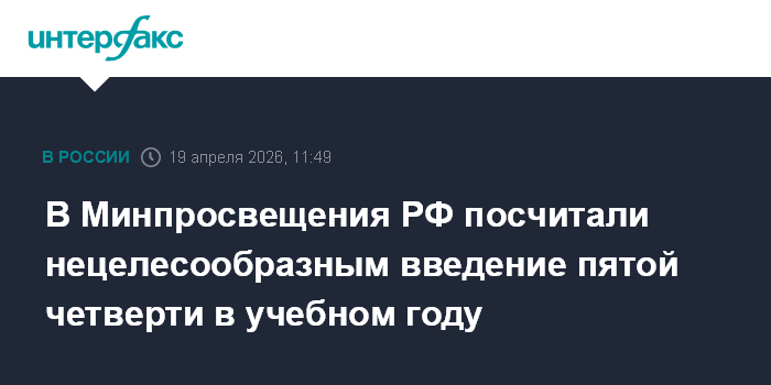 "В связи с появившимися в СМИ сообщениями об увеличении продолжительности учебного года и введении так называемой пятой четверти Минпросвещения России сообщает о нецелесообразности подобной инициативы", - говорится в сообщении.