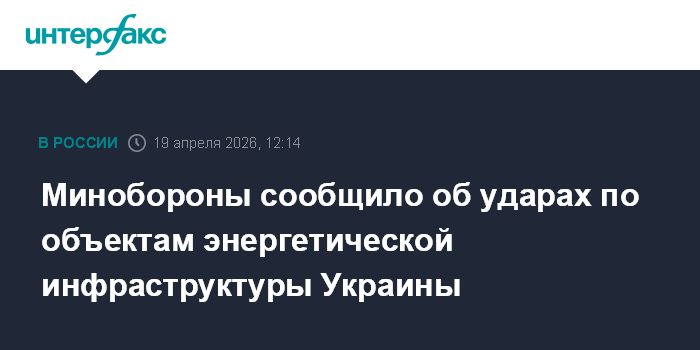 Минобороны сообщило об ударах по объектам энергетической инфраструктуры Украины