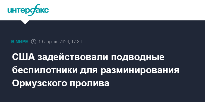 Москва. 19 апреля. INTERFAX.RU - Американские ВМС задействовали подводные беспилотные аппараты для расчистки Ормузского пролива от морских мин, сообщила в воскресенье газета The Wall Street Journal, ссылаясь на представителя министерства обороны США.