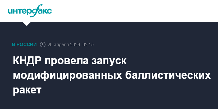 Москва. 20 апреля. INTERFAX.RU - Испытательный запуск модифицированных тактических баллистических ракет класса "земля-земля" типа "Хвасонпхо-11ра" прошел в воскресенье в Северной Корее, сообщает ЦТАК.