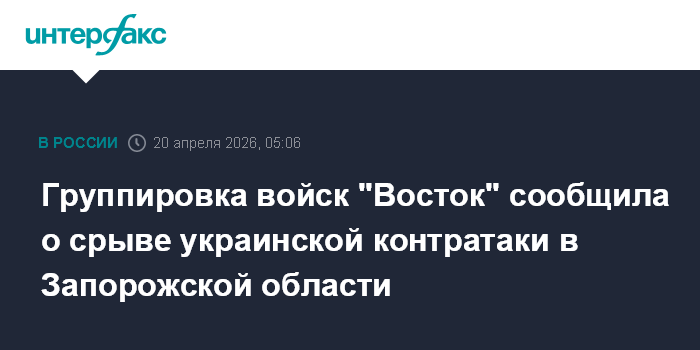 Группировка войск "Восток" сообщила о срыве украинской контратаки в Запорожской области