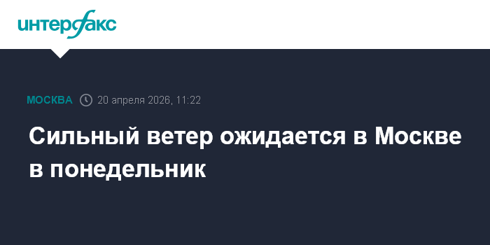 Москва. 20 апреля. INTERFAX.RU - Столичный комплекс городского хозяйства предупреждает о сильном ветре, который ожидается в городе в понедельник.