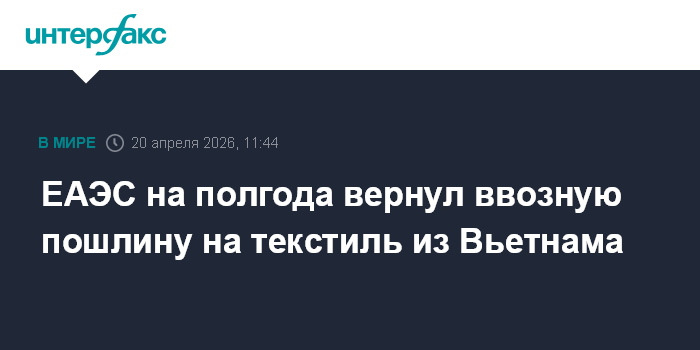 Основанием для временной отмены нулевой ставки стало превышение по итогам 2025 года триггерного уровня импорта товара из Вьетнама, предусмотренного соглашением, пояснили в ЕЭК.