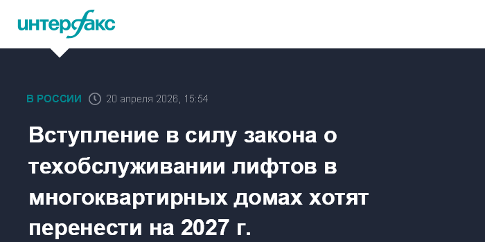 Вступление в силу закона о техобслуживании лифтов в многоквартирных домах хотят перенести на 2027 г.