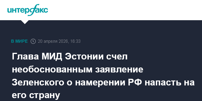 Москва. 20 апреля. INTERFAX.RU - Министр иностранных дел Эстонии Маргус Цахкна заявил, что не видит оснований для сделанных президентом Украины Владимиром Зеленским высказываний о намерении России напасть на Эстонию.
