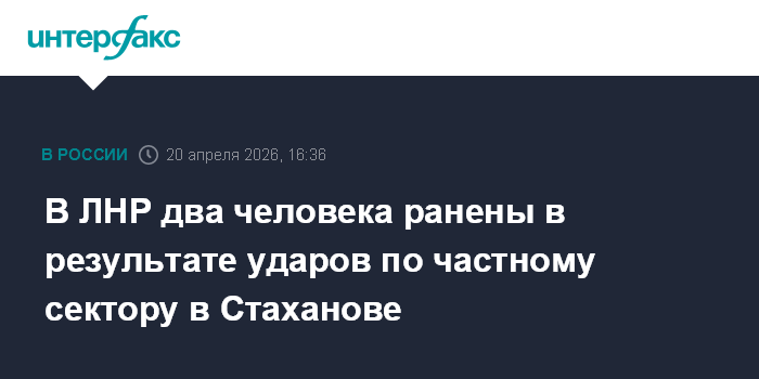 Москва. 20 апреля. INTERFAX.RU - В Луганской народной республике утром был нанесен удар по частному сектору в центре города Стаханов, там ранены два человека, сообщил глава ЛНР Леонид Пасечник.