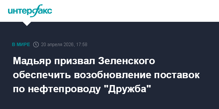 На пресс-конференции Мадьяр заявил, что Зеленскому нужно обеспечить перекачку нефти по трубопроводу, как только его починят. Он также призвал Россию возобновить поставки нефти.