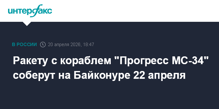 Ракету с кораблем "Прогресс МС-34" соберут на Байконуре 22 апреля
