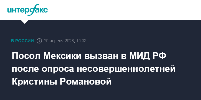 Посол Мексики вызван в МИД РФ после опроса несовершеннолетней Кристины Романовой