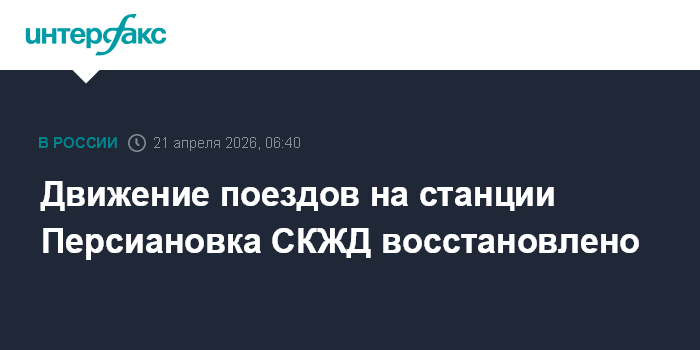 "На станции Персиановка Северо-Кавказской железной дороги в 04:24 возобновлено движение поездов, приостановленного из-за повреждения инфраструктуры в результате постороннего вмешательства в работу железнодорожного транспорта", - говорится в сообщении.