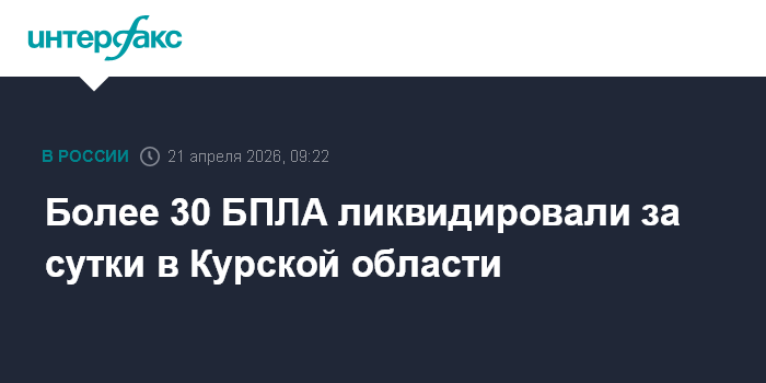 Москва. 21 апреля. INTERFAX.RU - Губернатор Курской области Александр Хинштейн сообщил о 32 украинских беспилотниках, сбитых над регионом за минувшие сутки.