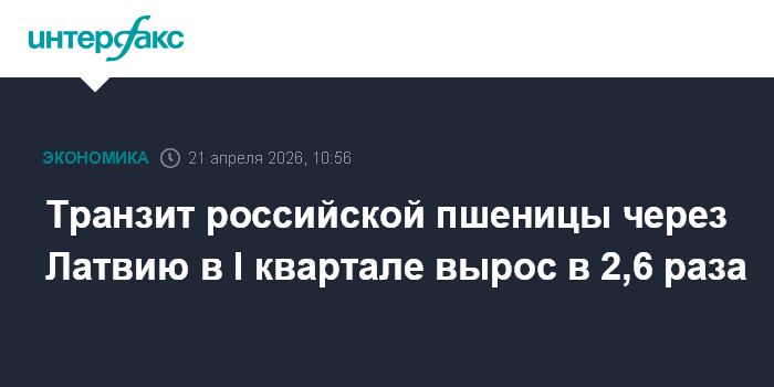 Москва. 21 апреля. INTERFAX.RU - Транзит российских зерновых через Латвию в январе-марте 2026 года увеличился в 2,6 раза к уровню аналогичного периода прошлого года - до 139,4 тыс. тонн, сообщила латвийская Служба государственных доходов (СГД).