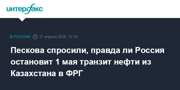 Пескова спросили, правда ли Россия остановит 1 мая транзит нефти из Казахстана в ФРГ
