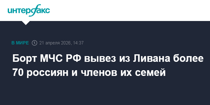 Москва. 21 апреля. INTERFAX.RU - Самолет МЧС РФ отправился из Бейрута в Москву, на нем летят 73 россиянина, пожелавших покинуть зону военного конфликта, сообщила пресс-служба министерства во вторник.