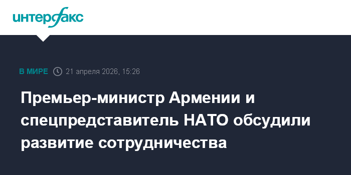 Москва. 21 апреля. INTERFAX.RU - Перспективы развития сотрудничества Армении и НАТО обсудили на встрече в Ереване премьер-министр республики Никол Пашинян и спецпредставитель генсека альянса на Кавказе и в Центральной Азии Кевин Гамильтон.