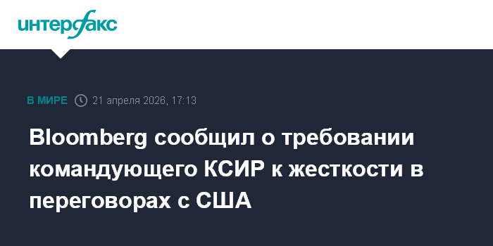 Bloomberg сообщил о требовании командующего КСИР к жесткости в переговорах с США