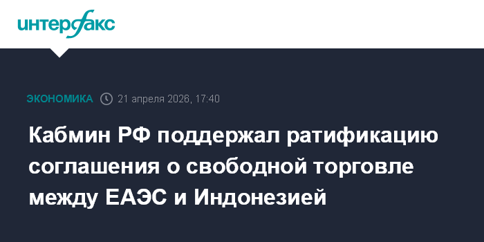 Кабмин РФ поддержал ратификацию соглашения о свободной торговле между ЕАЭС и Индонезией