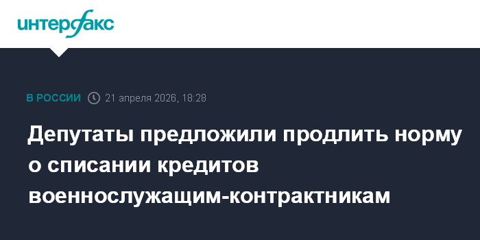 Москва. 21 апреля. INTERFAX.RU - Группа депутатов внесла в Госдуму законопроект о продлении механизма списания просроченных кредитов до 10 млн руб. для мобилизованных, призывников (кроме курсантов) и контрактников, участвующих в специальной военной операции, если по кредитам начато судебное взыскание.