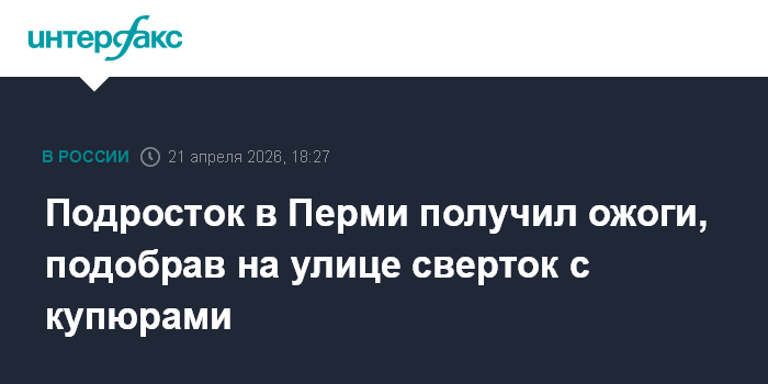 Москва. 21 апреля. INTERFAX.RU - Несовершеннолетний получил ожоги в Перми, подняв найденный на улице сверток с деньгами, сообщается в телеграм-канале министерства территориальной безопасности Пермского края во вторник.