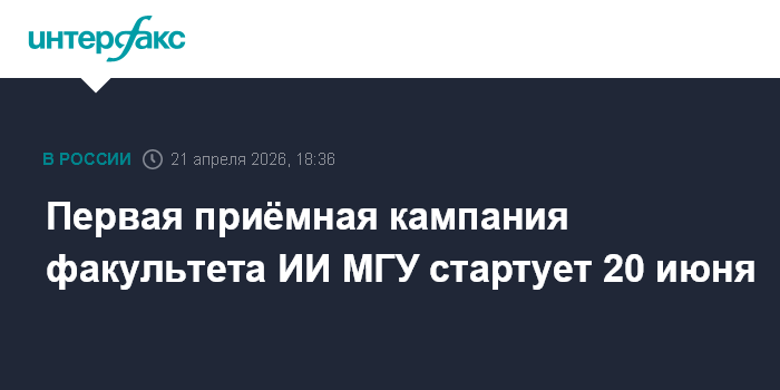 "Решением ректора МГУ имени М. В. Ломоносова в 2025 году был создан новый факультет - факультет искусственного интеллекта. (...) Первая приёмная кампания факультета искусственного интеллекта МГУ стартует 20 июня 2026 года. На программы бакалавриата и магистратуры предусмотрено 70 мест, среди вступительных испытаний - экзамены по математике, информатике и физике", - говорится в сообщении.