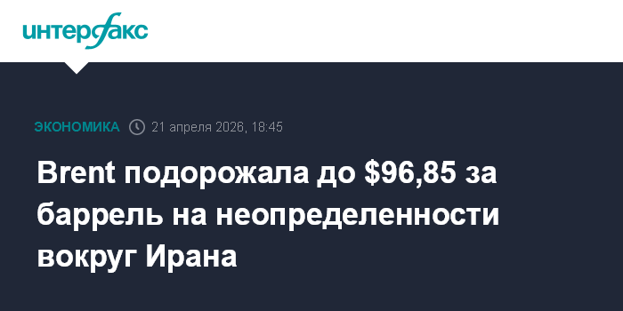 Brent подорожала до $96,85 за баррель на неопределенности вокруг Ирана