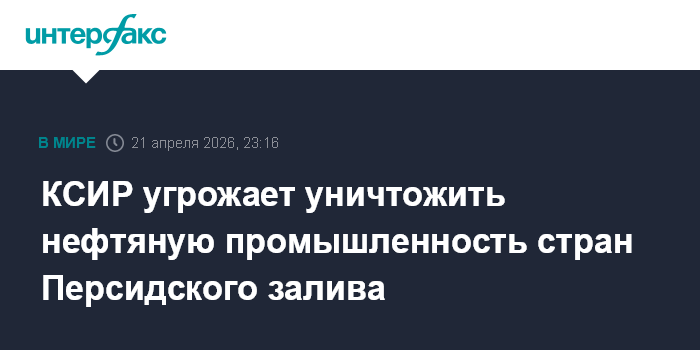 Москва. 21 апреля. INTERFAX.RU - Командующий воздушно-космическими силами Корпуса стражей исламской революции (КСИР) генерал Маджид Мусави выступил с угрозой уничтожить нефтяную промышленность стран Персидского залива, если против Ирана будут возобновлены боевые действия, передает агентство Mehr.