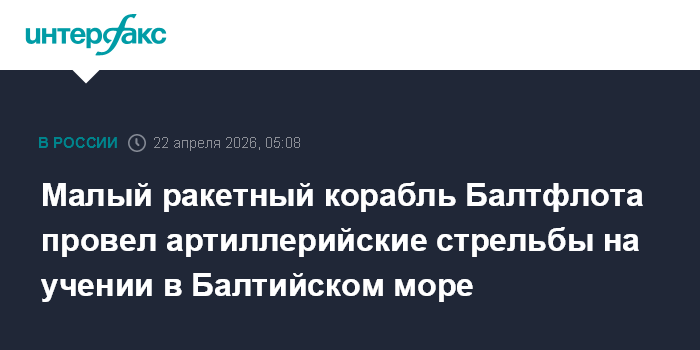 Малый ракетный корабль Балтфлота провел артиллерийские стрельбы на учении в Балтийском море