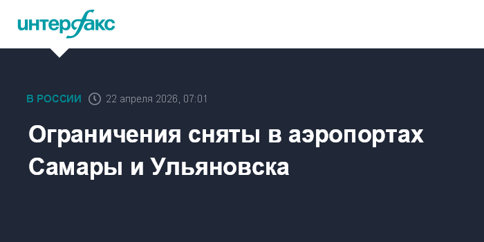 Москва. 22 апреля. INTERFAX.RU - Аэропорты Самары и Ульяновска возобновили прием и отправку рейсов, сообщил официальный представитель Росавиации Артем Кореняко в среду.