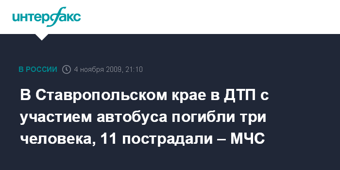 В Ставропольском крае в ДТП с участием автобуса погибли три человека, 11 пострадали – МЧС