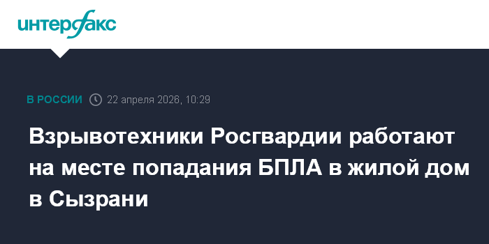 Москва. 22 апреля. INTERFAX.RU - Группы разминирования Росгвардии обследуют места возможного нахождения обломков БПЛА в Сызрани после его попадания в жилой дом, сообщает Приволжский округ ведомства.