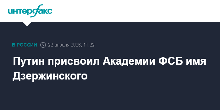 "Постановляю: присвоить федеральному государственному казенному образовательному учреждению высшего образования "Академия Федеральной службы безопасности Российской Федерации" почетное наименование "имени Дзержинского" и впредь именовать его – федеральное государственное казенное образовательное учреждение высшего образования "Академия Федеральной службы безопасности Российской Федерации имени Дзержинского", - сказано в указе. Он вступил в силу со дня подписания.
