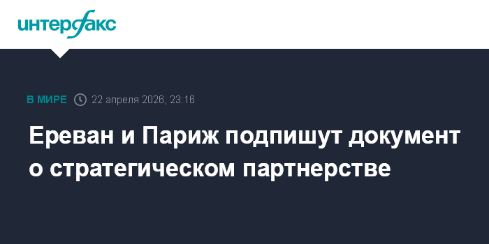 Москва. 22 апреля. INTERFAX.RU - Армения и Франция в начале мая подпишут документ о стратегическом партнерстве, заявил замглавы МИД Армении Ваан Костанян.