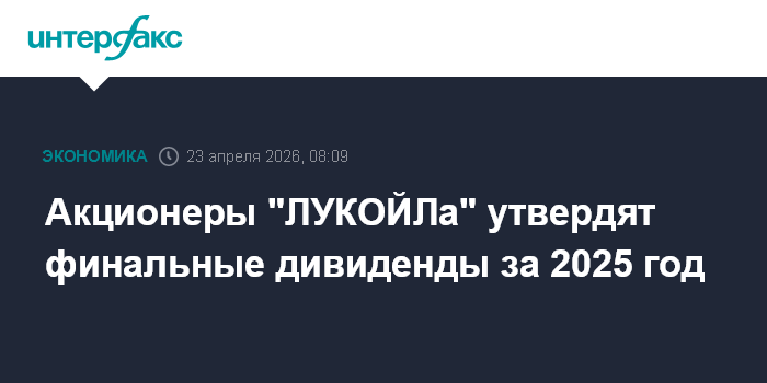 Акционеры "ЛУКОЙЛа" утвердят финальные дивиденды за 2025 год