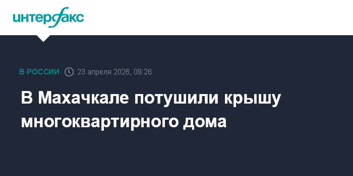Москва. 23 апреля. INTERFAX.RU - В Махачкале полностью потушили пожар на крыше шестиэтажного дома, который загорелся поздним вечером, сообщили "Интерфаксу" в пресс-службе ГУ МЧС по Дагестану.