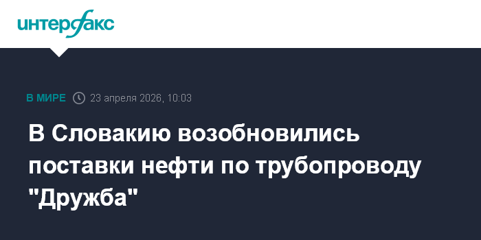Москва. 23 апреля. INTERFAX.RU - Словацкая сторона утром в четверг начала получать нефть по трубопроводу "Дружба", сообщают европейские СМИ со ссылкой на министерство экономики Словакии.